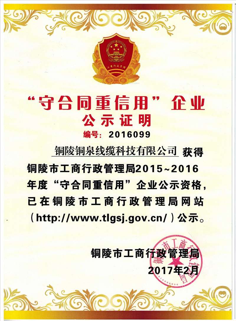 守合同重信用企業(yè)證書