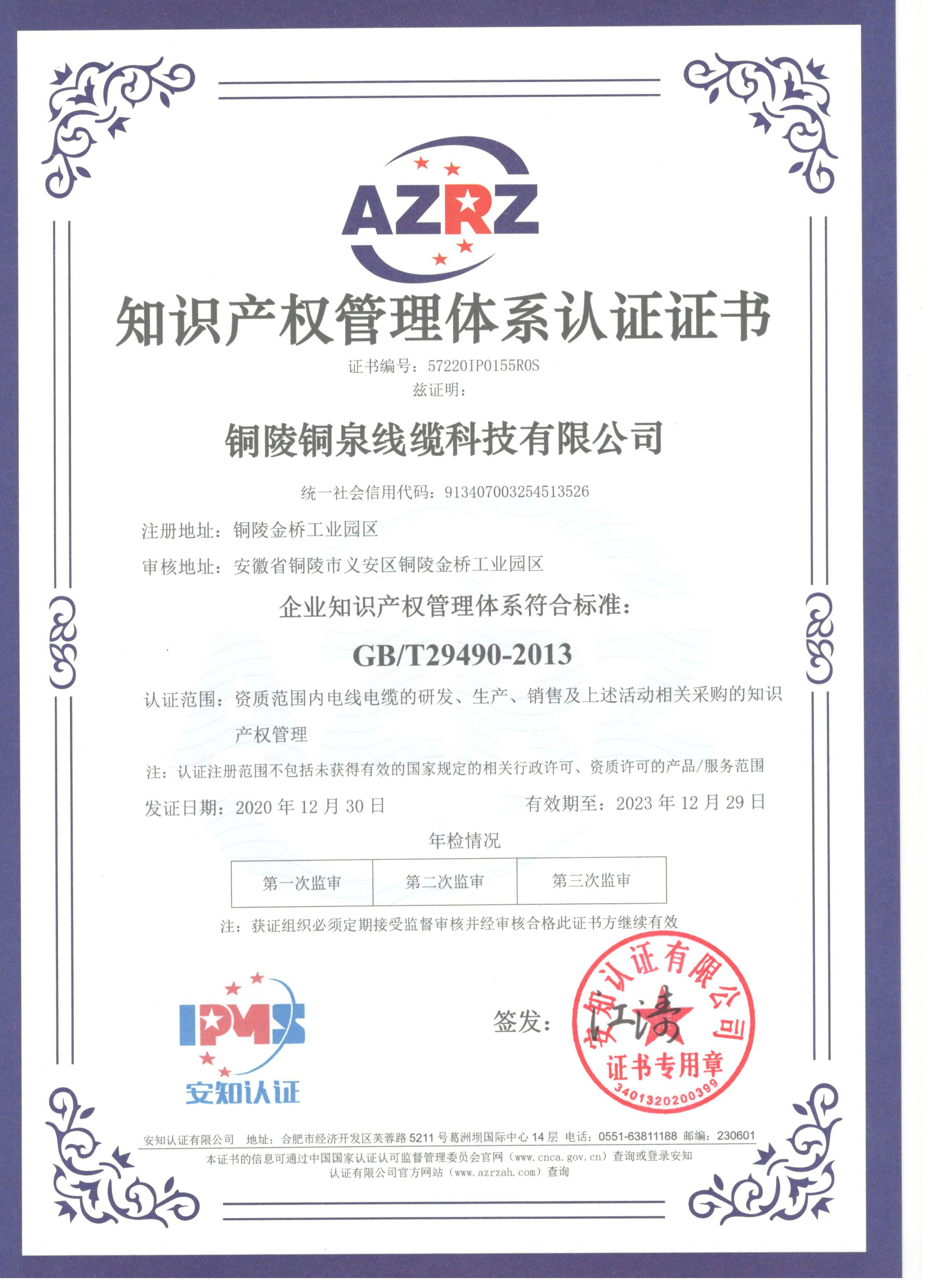 銅陵銅泉線纜科技有限公司為建立企業(yè)知識(shí)產(chǎn)權(quán)工作的規(guī)范體系,認(rèn)真貫徹落實(shí)《國(guó)家知識(shí)產(chǎn)權(quán)戰(zhàn)略綱要》,加強(qiáng)對(duì)企業(yè)知識(shí)產(chǎn)權(quán)工作的引導(dǎo),指導(dǎo)和幫助銅泉進(jìn)一步強(qiáng)化知識(shí)產(chǎn)權(quán)創(chuàng)造、運(yùn)用、管理和保護(hù),增強(qiáng)自主創(chuàng)新能力,實(shí)現(xiàn)對(duì)知識(shí)產(chǎn)權(quán)的科學(xué)管理和戰(zhàn)略運(yùn)用,提高國(guó)際、國(guó)內(nèi)市場(chǎng)競(jìng)爭(zhēng)能力。